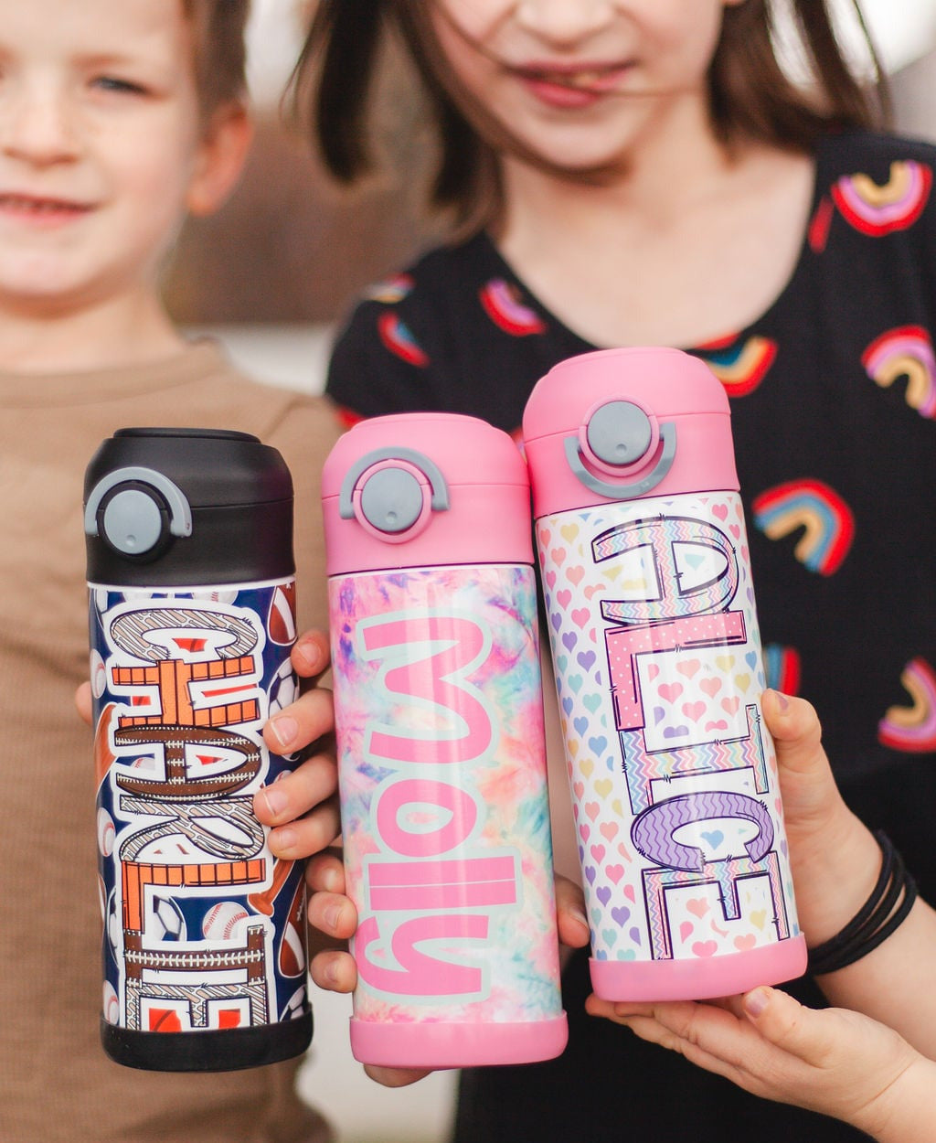 Our personalized water bottles are made to stand out—just like your kids! With bold designs, fun fonts, and mom-approved quality, staying hydrated has never looked this cool.