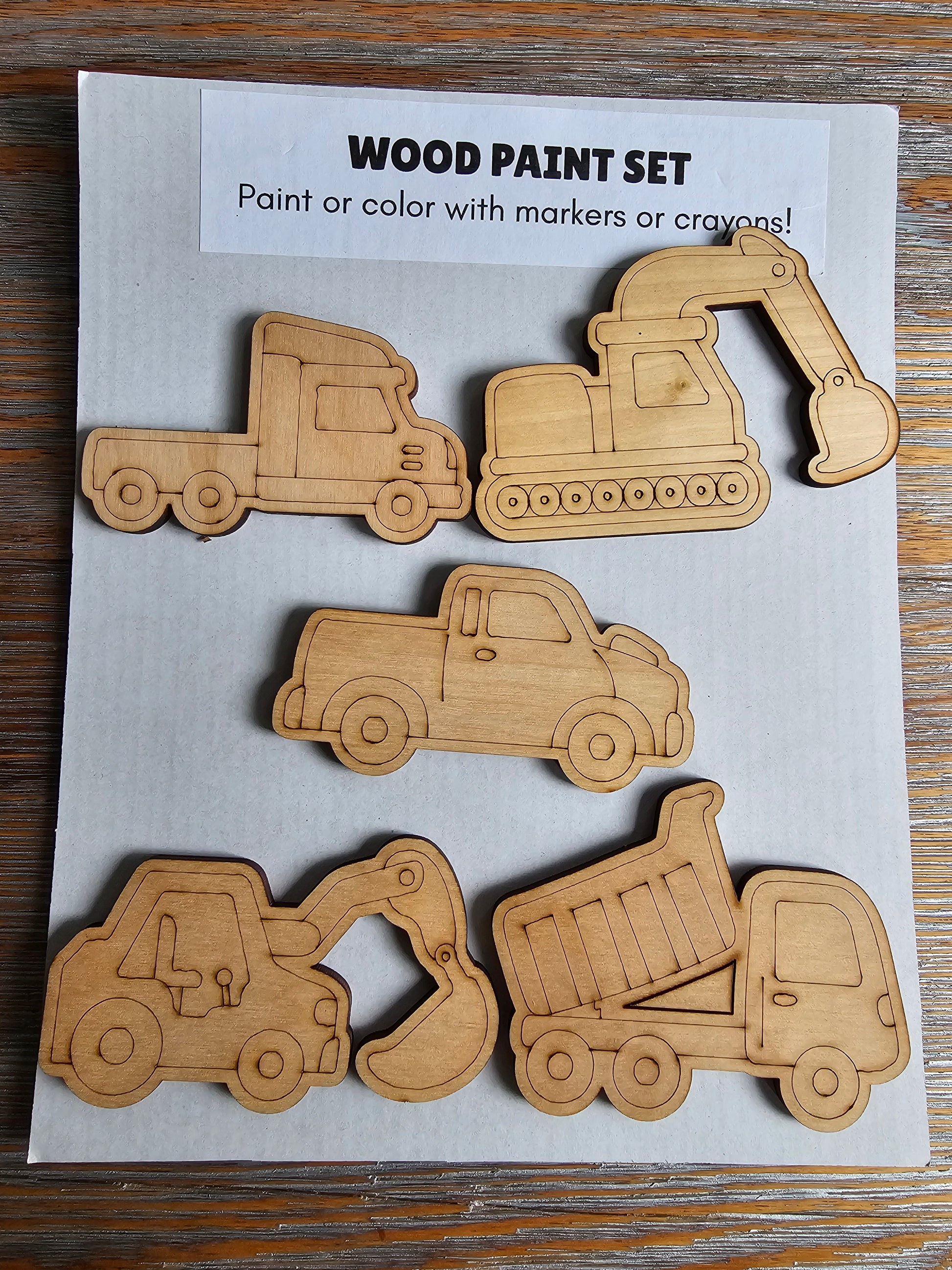 Construction Vehicles Wood Paint Set
