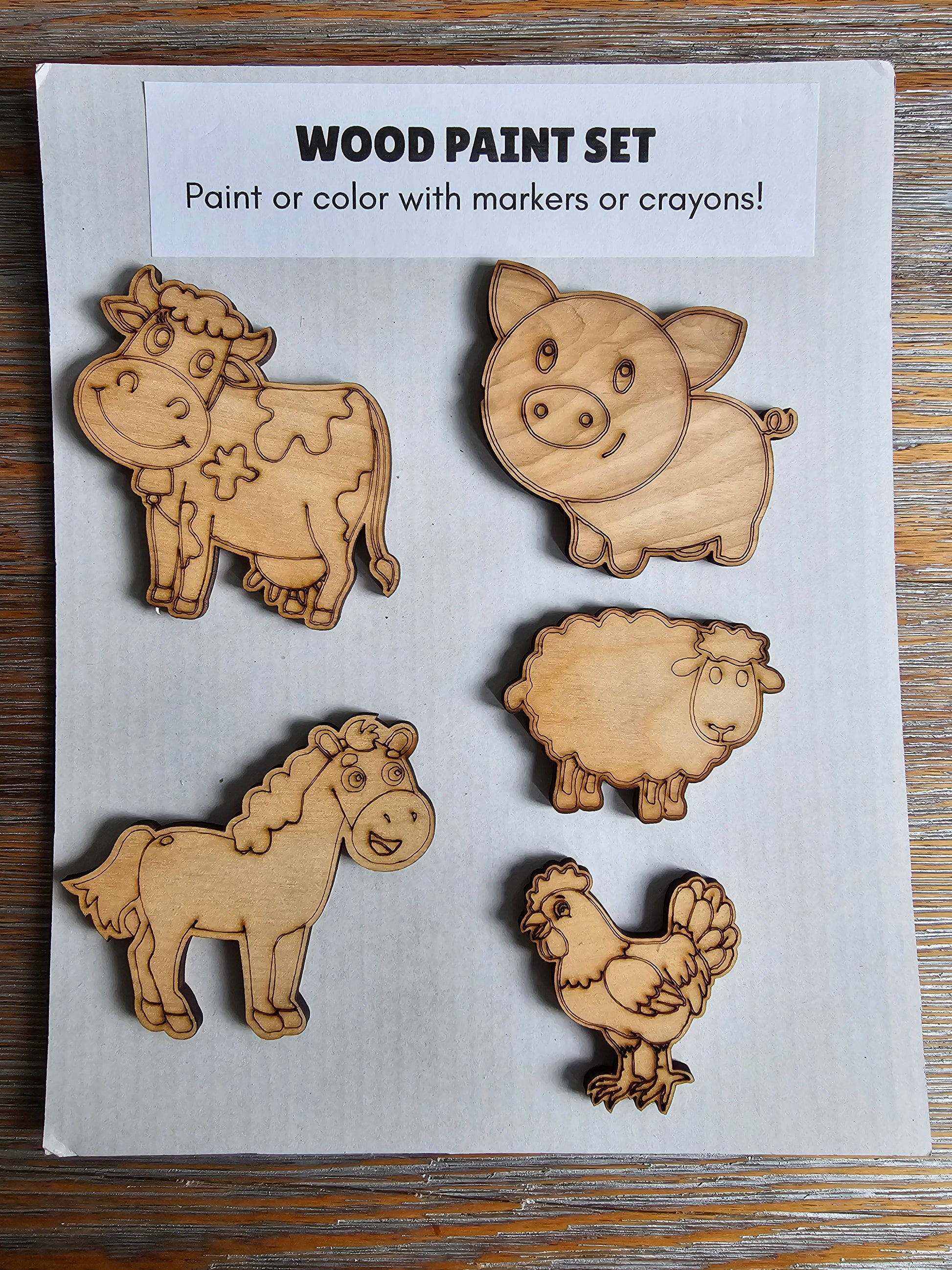 Each piece is laser-cut from smooth birch wood and shrink-wrapped on a sturdy display card — ready for paint, crayons, or markers. It’s the perfect screen-free activity for every little animal lover!