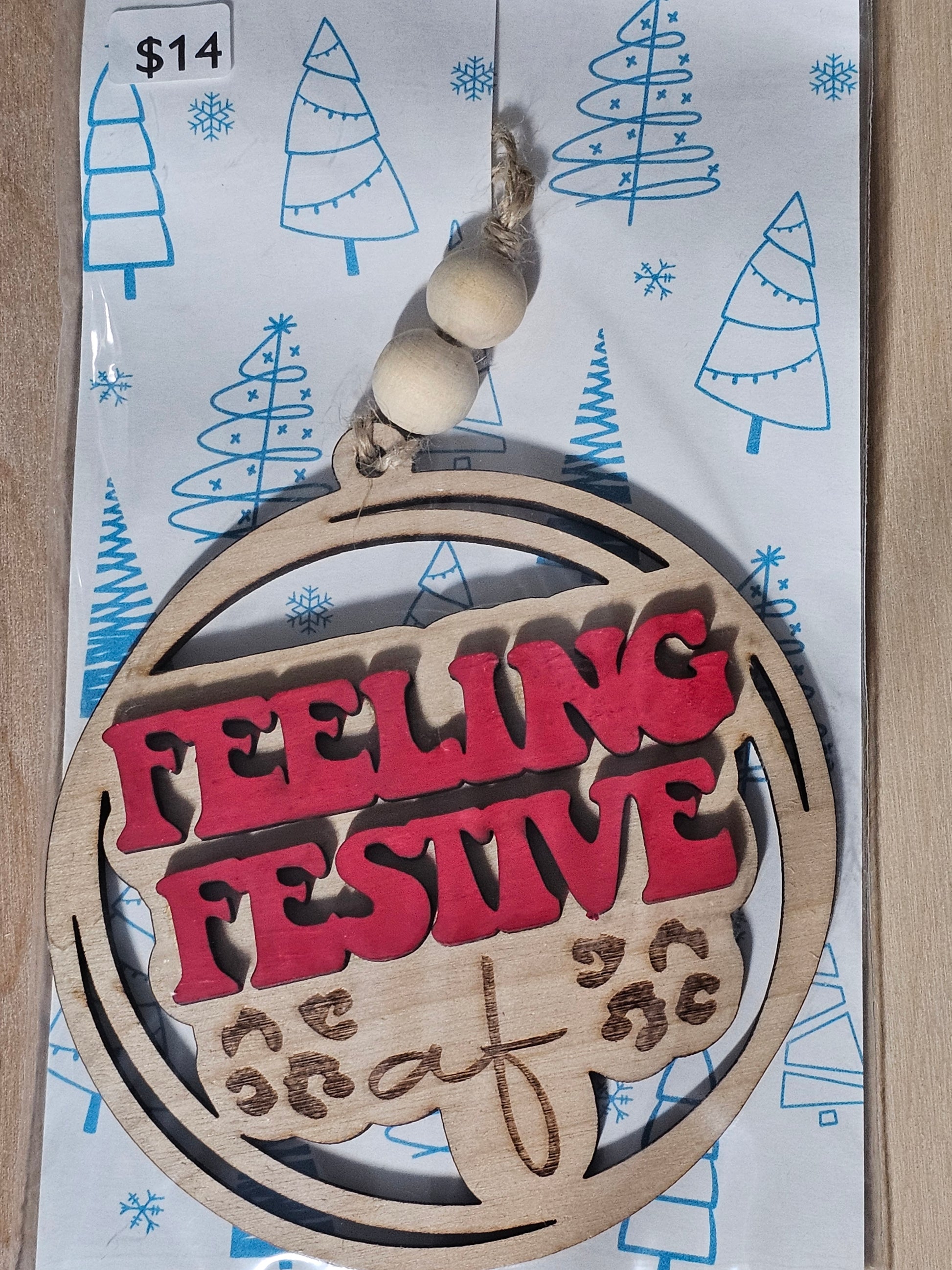 Feeling Festive AF Wood Ornament - READY TO SHIP