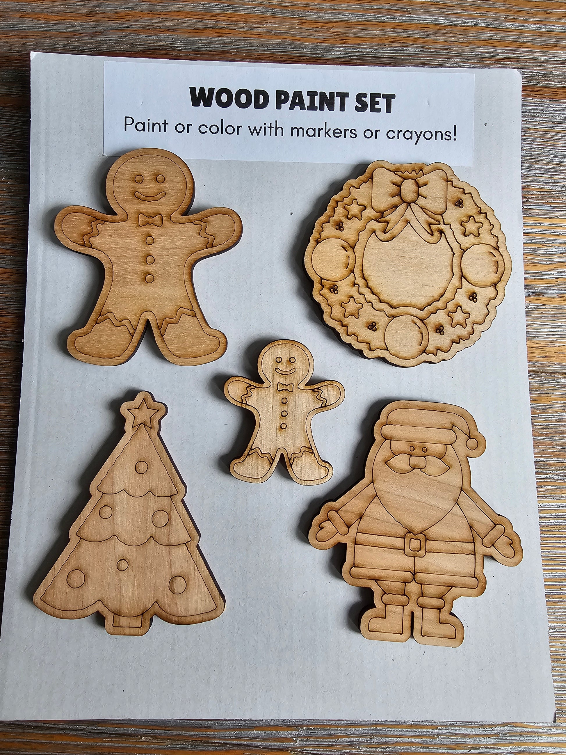 Bring on the holiday cheer with this 5-piece Gingerbread Wood Paint Set! Featuring jolly shapes like Santa, a Christmas tree, and the cutest little gingerbread duo, this festive kit is a fun, mess-free way to celebrate the season.