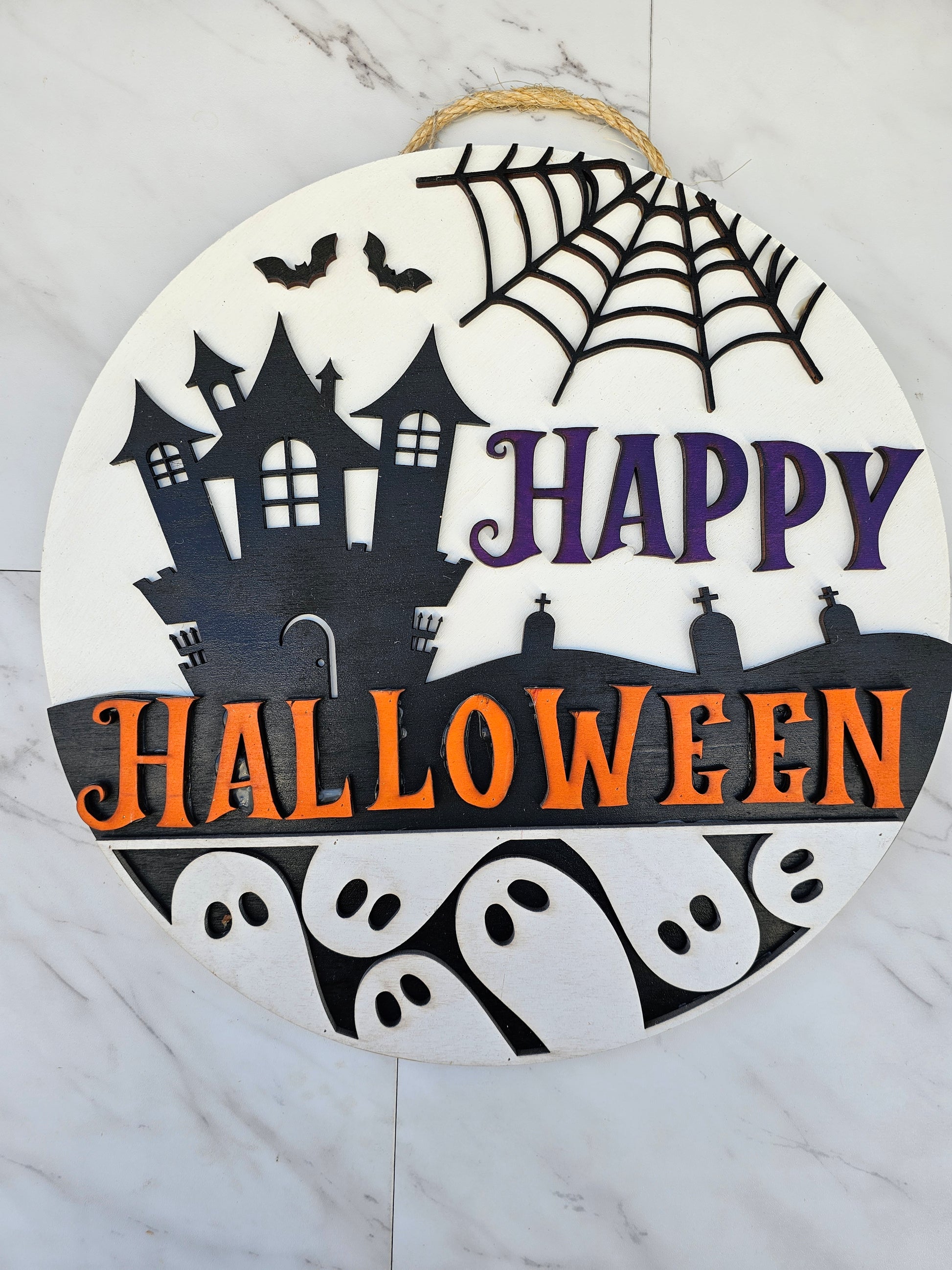 Happy Halloween Haunted House - Wood Door Sign - READY TO SHIP