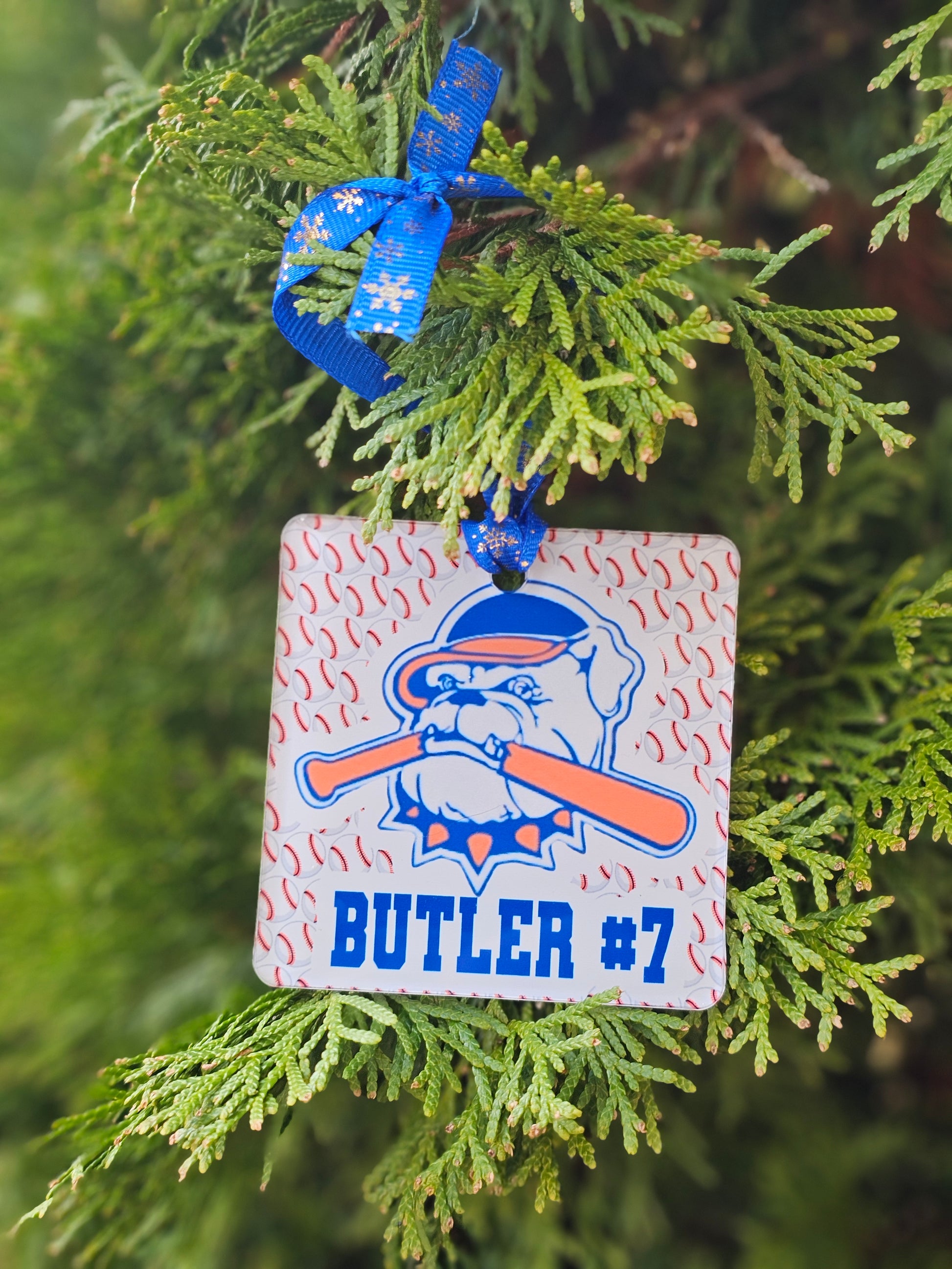 Buyers may enter just a name, just a number, or both — whatever they prefer printed on the ornament.