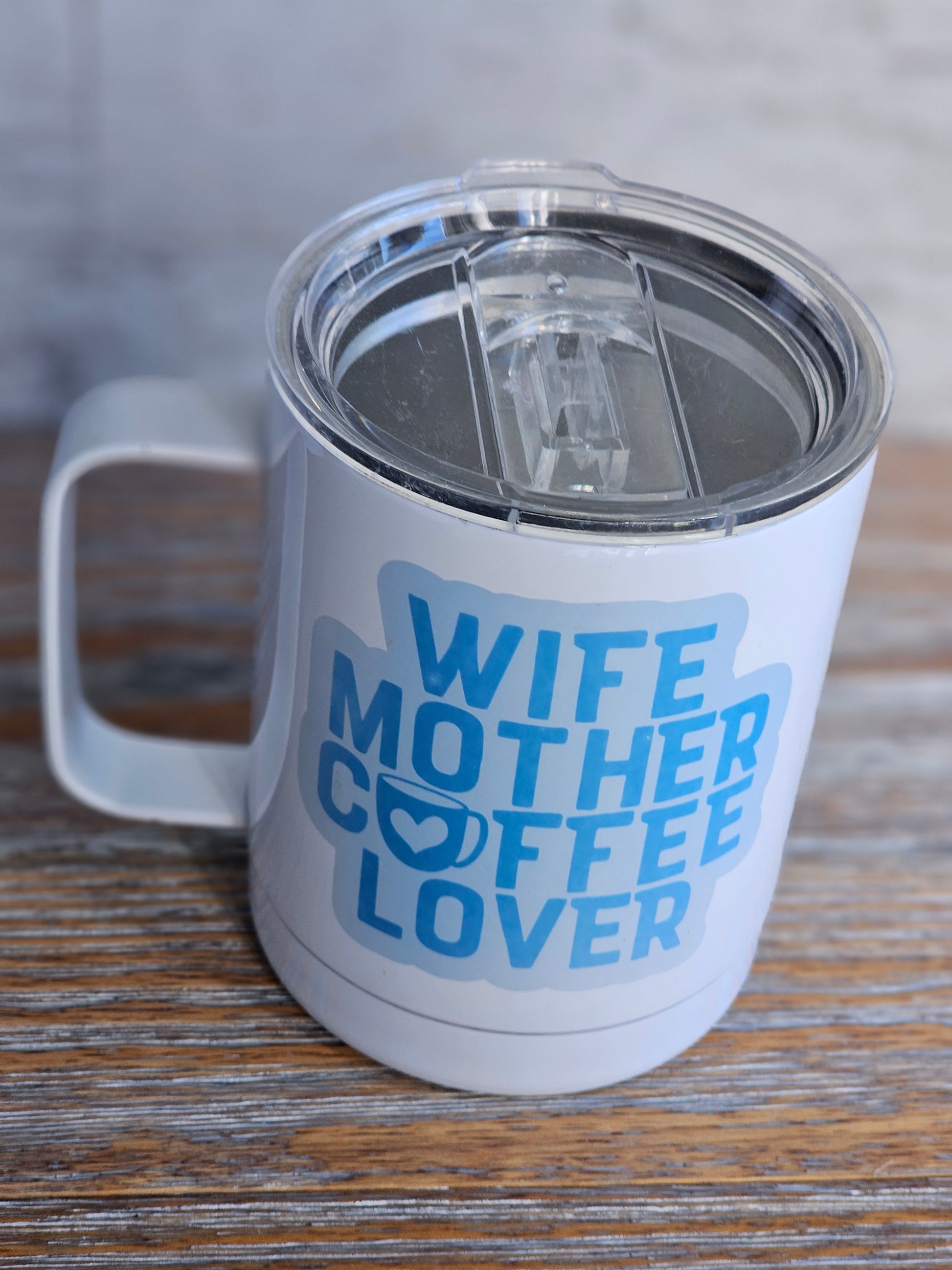 Wife Mother Coffee Lover - Metal Mug with Plastic Lid